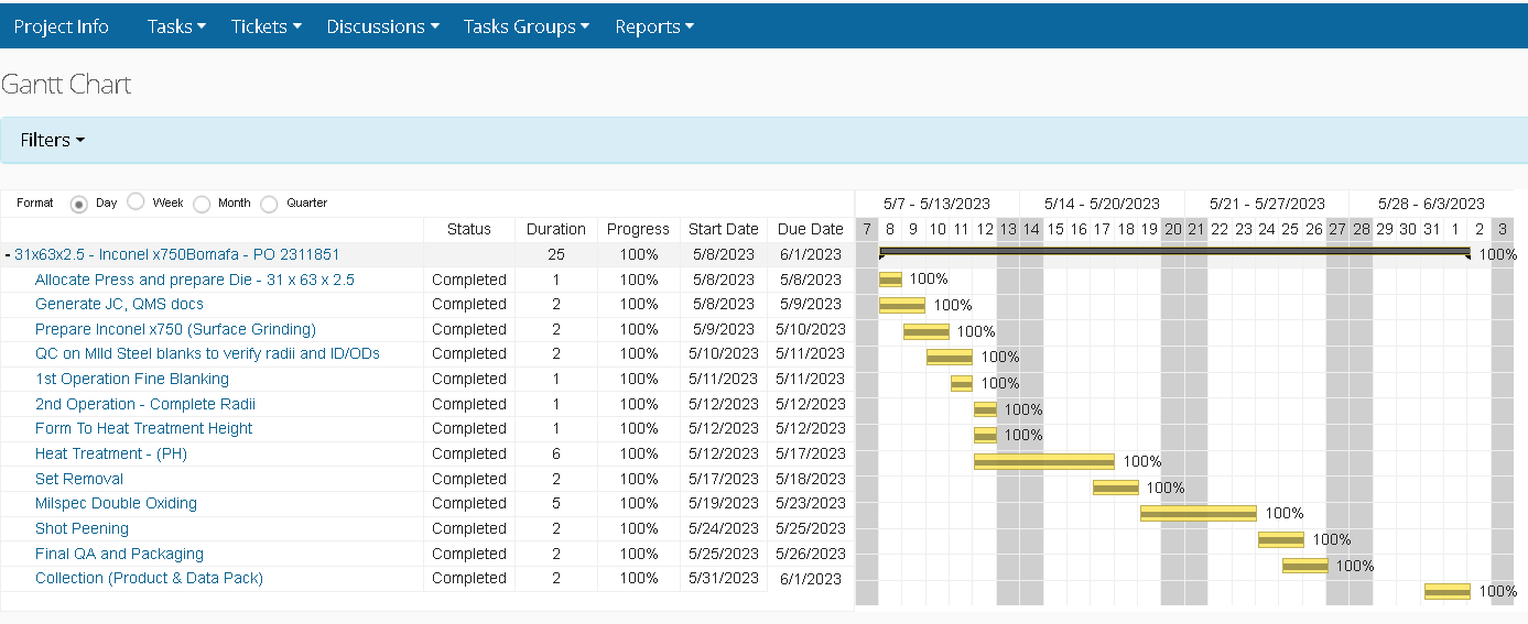 Often we must integrate our planning into large engineering projects. We do so and will provide you with a logon to our online tracking tool. Here we present the project plan in gantt chart form, and each deliverable will have all the associated documentation or evidence attached to it. Our large engineering clients love this tool.